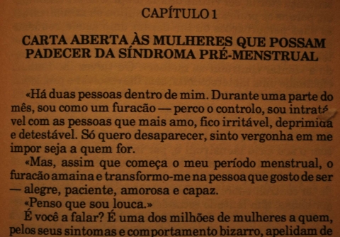 «Há duas pessoas dentro de mim. Durante uma parte do mês sou como um furacão: perco o controlo, sou intratável com as pessoas que me estão mais próximas, fico irritada e deprimida. Mas, assim que começa o meu período menstrual, o furacão amaina e volto a ser eu