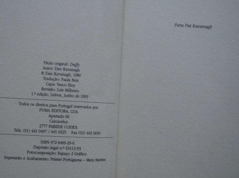 Duffy é um romance de Julian Barnes escrito sob o pseudônimo de Dan Kavanagh. Publicou o romance um ano depois de se casar com o agente literário Pat Kavanagh , a quem dedicou o livro.