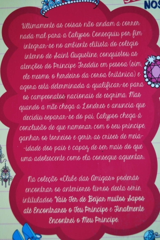 Ultimamente as coisas não andam a correr nada mal para a Calypso. Conseguiu por fim integrar-se no colégio interno, conquistou as atenções do Príncipe Freddie em pessoa e agora está determinada a qualificar-se para os campeonatos nacionais de esgrima. Mas quando a mãe chega a Londres e anuncia que decidiu separar-se do pai, Calypso chega à conclusão de que namorar com o seu príncipe, ganhar os torneios e gerir as crises de meia-idade dos pais é capaz de ser mais do que uma adolescente como ela consegue aguentar.