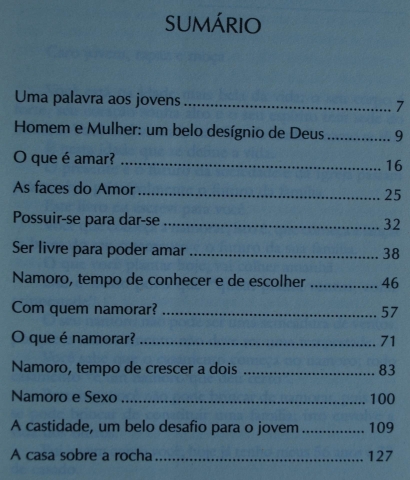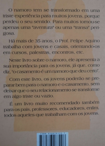 O namoro tem se transformado em uma triste experiência para muitos jovens, porque perdeu o seu sentido. Para muitos tornou-se apenas uma "aventura" ou uma "transa" perigosa. Há mais de 30 anos o Prof. Felipe Aquino trabalha com jovens e casais, orientando-os em cursos, palestras, Encontros, etc. Neste livro sobre o Namoro, ele apresenta a sua importância para os jovens, já que, como diz, "o casamento é um namoro que deu certo". Com este livro os jovens poderão se preparar bem para o namoro e o casamento, sem deixar que o seu relacionamento se transforme em algo triste ou vazio. É um livro muito recomendado também para os pais, professores, educadores, enfim, todos aqueles que trabalham com os jovens.