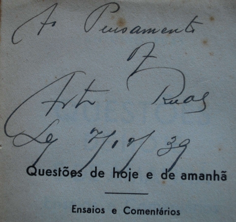 Observações: Com dedicatória rubrica do autor: (Ao Pensamento de António Ruas)