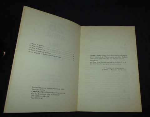 Livro: 25 Abril Dez Anos Depois Mesa Redonda