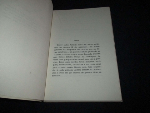 "Escrevi sobre António Botto um trecho publicado no número 13 da «presença», um ensaio publicado na marginália das «Cartas que me foram devolvidas», um pequeno estudo publicado no «Ciúme» e vários artigos numa discussão travada com Tomas Ribeiro Colaço no «Fradique». Se ainda mais qualquer coisa escrevi, nem vale a pena citar. Todos esses escritos foram incluídos, corrigidos, desenvolvidos, submetidos a um certo plano geral, - neste ensaio. Devem, pois, ficar esquecidos lá onde primeiro saíram embora as publicações e livros em que saíram não possam ficar esquecidos."