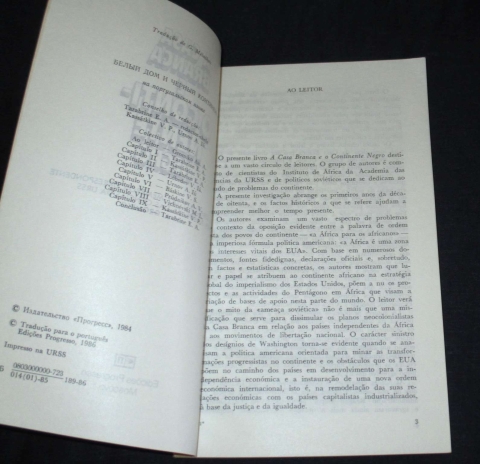 "A Casa Branca e o Continente Negro é o primeiro livro de autores soviéticos que analisa a política de agressão dos Estados Unidos na África durante a administração Reagan."