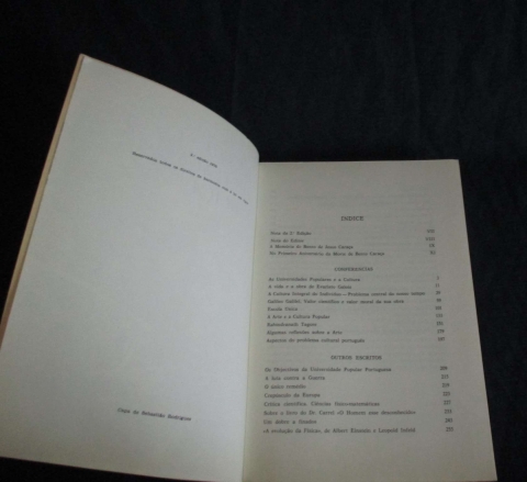 2ª edição desta obra que reúne um conjunto de conferências e escritos diversos, que se encontravam dispersos, segundo um esquema elaborado por Manuel Mendes, entre os quais: A Cultura Integral do Indivíduo, Galileo Galilei, Algumas reflexões sobre a Arte, A Evolução da Física, A Matemática na vida dos Homens, assim como os documentos de uma polémica com António Sérgio e o manifesto que levou à sua demissão compulsiva das funções públicas que exercia.