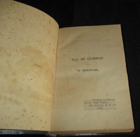 Organizado por Eloy do Amaral e Cardoso Martha. Edição original do In Memoriam , obra com dezenas de depoimentos sobre Eça e ilustrada com gravuras.