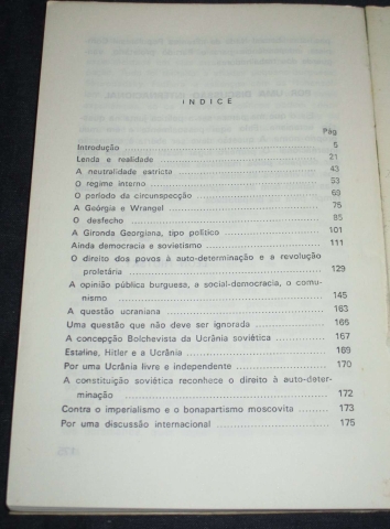 Do índice destacam-se: A neutralidade estricta; A Geórgia e Wrangel; A questão ucraniana; Estaline, Hitler e a Ucrânia; Por uma Ucrânia livre e independente; Por uma discussão internacional.
