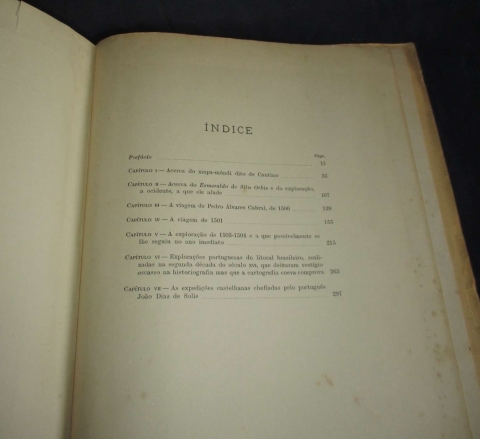 Do índice: Acerca do mapa-mundi dito de Cantino; Acerca do Esmeraldo de Situ Orbis e da exploração a ocidente, a que ele alude; A viagem de Pedro Álvares Cabral, de 1500; A viagem de 1501; A exploração de 1503-1504 e a que possivelmente se lhe seguiu no ano imediato; Explorações portuguesas do litoral brasileiro, realizadas na segunda década do século XVI, que deixaram vestígio escasso na historiografia mas que a cartografia coeva comprova; As expedições chefiadas pelo português João Dias de Solis.