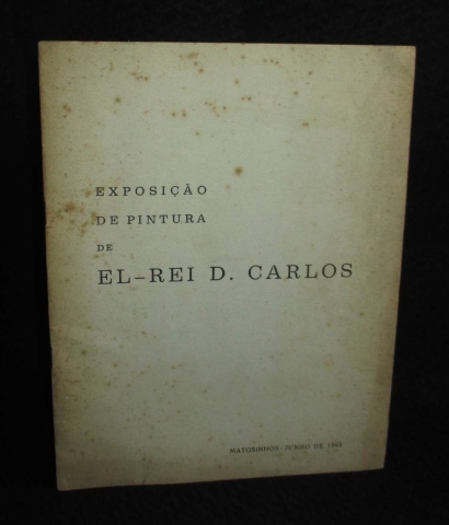 Catálogo da exposição realizada por ocasião das Festas do Concelho, em 1965, ilustrado com várias reproduções de obras de Dom Carlos. Exemplar em muito razoável estado geral de conservação exibindo algumas manchas de acidez. Monarquia.