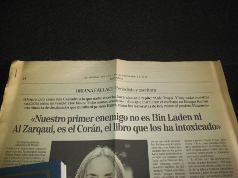 Entre a primeira e a segunda fogueira, uma rigorosíssima análise daquilo a que chama Incêndio de Tróia, isto é, de uma Europa que, na sua opinião, já não é Europa: doravante é a Eurábia, colónia do Islão.(E a Itália, é a base dessa colónia.) E fá-lo numa perspectiva histórica, filosófica, moral e política, enfrentando como sempre temas sobre os quais ninguém se atreve a falar e usando uma lógica impecável. Ensaios.