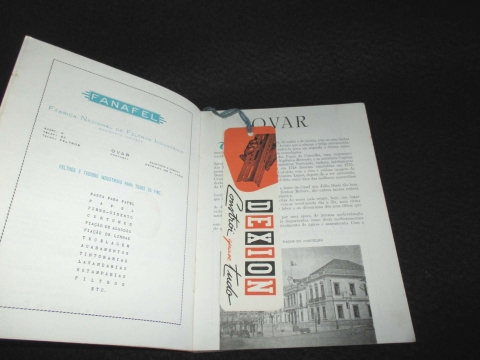 Capa de brochura. Preserva marcador de página. Número único. Interessante guia da região de Ovar, Aveiro, Portugal. Turística Comercial e Industrial. Inclui anúncios de época, textos descritivos, fotografias e elementos gráficos característicos das publicações regionais portuguesas do pós‑guerra.
