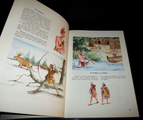 Histórias dos Esquimós, dos Índios da América do Norte, das Ilhas da América Central, dos Incas, dos Aztecas... Álbum ilustrado, de apresentação dos países da América, com os mapas respectivos indicando a capital e as principais cidades, a superfície, a população, a língua, a moeda, o sistema político. Inclui informações curiosas sobre alguns países, bem como lendas e relatos ilustrativos do espírito de cada povo ou da sua história. Um belo livro para oferecer.