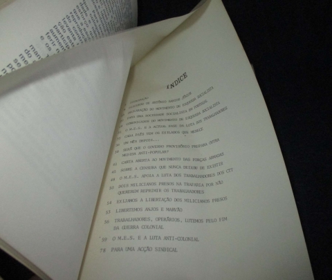 "Cerca de dois meses após ter surgido na cena política, entende o M. E. S. ser oportuno e vantajoso proceder à compilação de um conjunto de textos elaborados durante este seu primeiro período de existência legal e dados a conhecer por formas variadas."