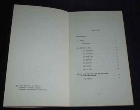 Tragedia Num Ato Unico Europeu em Seis Cenas ou A Morte de Shakespeare antes da tragedia ser Tragedia, Pessoa(s) etc., O "Hic et Nunc" de Mr.Pickwick, O Tempo de Pedra.