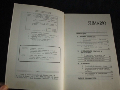 Do índice: Poder e Sociedade; O Movimento Político e os Partidos; O Estado.
