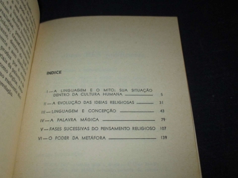 Tradução de Rui Reininho. Do índice: A Linguagem e o Mito: sua situação dentro da cultura humana; A evolução das ideias religiosas; Linguagem e concepção; A Palavra Mágica; Fases sucessivas do pensamento religioso; O poder da metáfora.