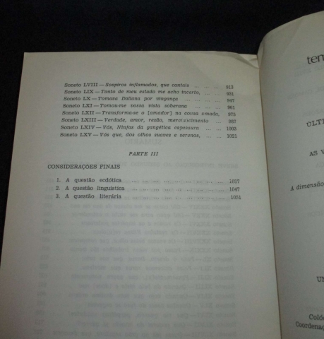 Texto estabelecido à luz da tradição manuscrita, em confronto com a tradição impressa. Apresentação de Sílvio Elia. Revisão editorial e colaboração na adaptação ortográfica de Sebastião Tavares de Pinho. Sonetos XXXI a LXV.