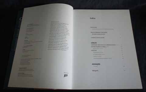 "Esta publicação tem por base uma selecção de oitenta peças das mais representativas dos vários períodos de produção – desde o início do século XVI até ao declínio da indústria, já no século XVII. Depois de uma breve história da Colecção, apresenta-se, na primeira parte, as várias tipologias cerâmicas em função da decoração, tendo em conta critérios cronológicos. Na segunda parte, dedicada à azulejaria, são tratados os grandes painéis, frisos e cercaduras bem como alguns exemplares de azulejos soltos, cuja grande maioria se encontra em exposição permanente." (FCG)