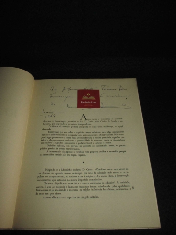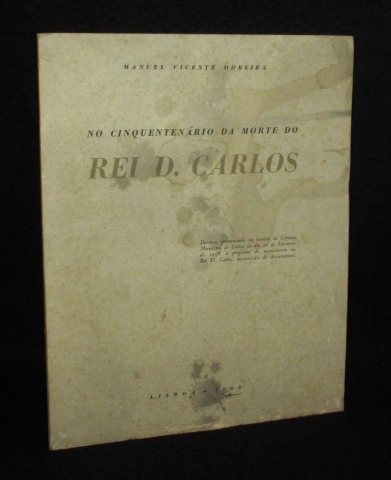 Discurso pronunciado na reunião da Câmara Municipal de Lisboa do dia 20 de Fevereiro de 1958, a propósito do monumento ao Rei D. Carlos. A obra inclui documentos complementares e iconografia, constituindo um testemunho histórico relevante sobre a memória monárquica na Lisboa do pós‑guerra. Separata do Nº 76 da "Revista Municipal". Capa de brochura. Ilustrado. História de Portugal. Monarquia.