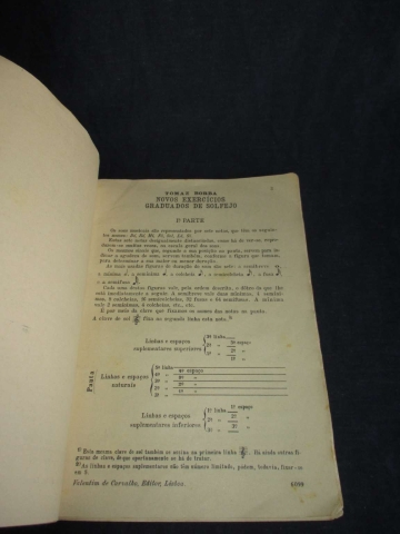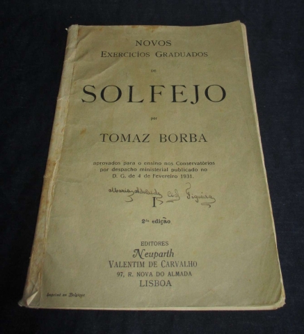 Assinatura de posse. Alguns apontamentos a lápis. Capa de brochura. Aprovados para o ensino nos Conservatórios por despacho ministerial publicado no D.G. de 4 de Fevereiro de 1931. Profusamente ilustrado com partituras musicais. Esta 2.ª edição mantém a estrutura progressiva dos exercícios, com abundante notação musical e organização pedagógica que tornou a obra uma referência incontornável no ensino formal da música em Portugal, adoptada pelos liceus, academias, seminários, escolas, etc.
