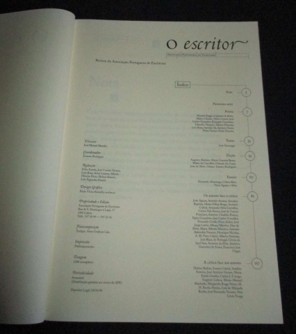 Revista dirigida por José Manuel Mendes. Neste número: Nota; Poesia (Manuel Alegre, Casimiro de Brito, Mário Cláudio, Hélia Correia, Pedro Tamen, entre outros), Teatro (José Saramago); Ficção (Augusto Abelaira, Mário de Carvalho, Urbano Tavares Rodrigues, João de Melo, Maria Graciete Besse, Orlando da Costa); Ensaio (Fernando Alvarenga, Celina Silva, Vítor Aguiar e Silva; Os autores face à crítica (João Aguiar, Fernando Grade, Maria Alberta Menéres, Nuno Júdice, entre outros); A crítica face aos autores (Eunice Cabral, Eugénio Lisboa, Maria Estrela Guedes, entre outros).