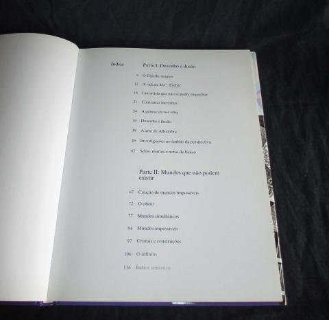 A obra de Escher é inclassificável. Usar de um critério científico, psicológico, ou, estético, exclusivamente não é a melhor forma para julgar o seu trabalho. A tarefa não é simples. As questões sucedem-se umas às outras. Porque criou esta imagens? Como as elaborou? Quantos estudos e versões anteriores foram necessárias para chegar às suas conclusões? De que forma estão interligadas? Este livro, com informação bibliográfica detalhada, 250 ilustrações, e explicações dos problemas matemáticos, oferece todas as respostas a estas, e outras questões.