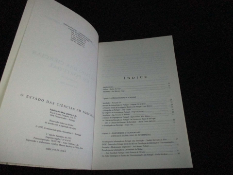 Capa de brochura. Análise ao panorama científico português no início da década de 90. Publicado no âmbito da Europália 91 - Portugal. Uma obra essencial para compreender o panorama científico português no início da década de 1990. O livro apresenta uma análise abrangente da investigação científica, do ensino superior, das políticas de ciência e tecnologia e das dinâmicas institucionais que moldaram o desenvolvimento científico do país.