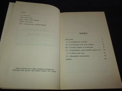 "Sobre a Actualidade da Revolução. Nunca ter separado a teoria da prática, tal é, segundo Lukács, o mérito essencial de Lenine. Escrito em 1924, por altura da morte de Lenine, o presente volume põe em evidência a unidade de um pensamento que nunca teve de sacrificar ao total empenhamento na acção uma pura fidelidade aos princípios. Assim, a obra de Lukács constitui simultaneamente uma advertência contra os desvios que ameaçam todas as revoluções."