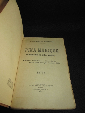 Primeira edição de 1923 da obra clássica de Eduardo de Noronha sobre Diogo Inácio de Pina Manique, intendente‑geral da Polícia e figura central da administração pombalina e pós‑pombalina.
