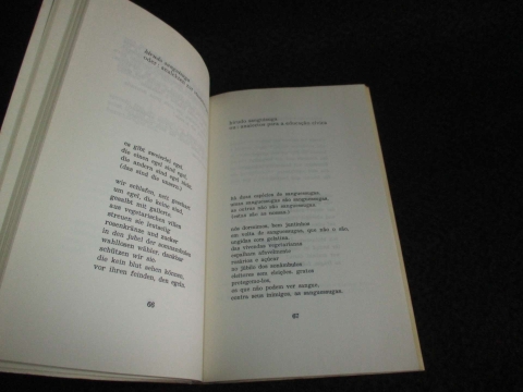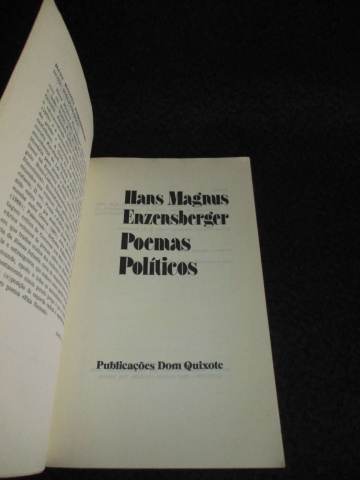 Assinatura de posse. Capa de brochura. Tradução de Almeida Faria. Edição bilingue alemão / português. Seleção de poemas políticos de Enzensberger, um dos mais influentes poetas e ensaístas alemães do pós‑guerra. Enzensberger é conhecido por combinar ironia, lucidez crítica e precisão intelectual, sendo uma figura central da poesia europeia contemporânea.