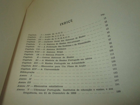 Exemplar por abrir. Ilustrado em extratexto com tabela e mapa a cores, desdobráveis, sobre os sistemas de ensino em África.
