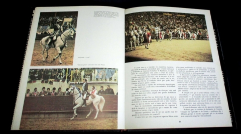 Obra de divulgação do mundo equestre português, nos seus mais variados aspectos: desde as raças cavalares, onde nascem e pastam, às feiras tradicionais onde são exibidas e comercializadas, às arenas e campos desportivos onde as suas qualidades são postas em evidência, entre outros. Descreve sucintamente a história da equitação em Portugal; Os cavalos Lusitano, da Sorraia, Alter, Garrano e de toureio; A Estação Zootécnica Nacional e o Centro Nacional de Produção Cavalar; As feiras da Golegã, Ribatejo e de Vila Franca de Xira; A Escola de Mafra e outras congéneres; O Museu Nacional dos Coches; As corridas às Lebres; As relações entre os cavalos e a literatura, colocando em evidência alguns livros de equitação escritos por portugueses, do século XIV a XIX.