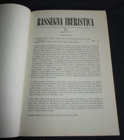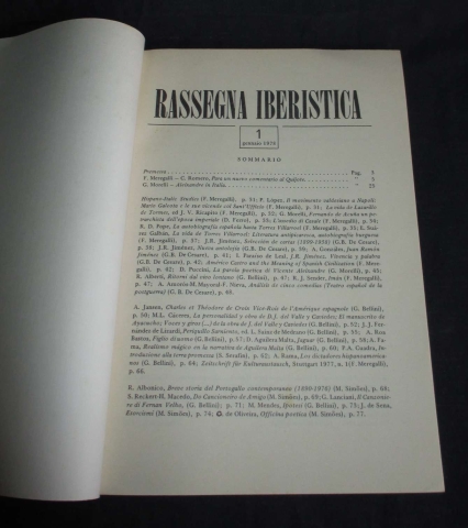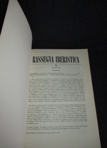 Primeiros três números da revista fundada por Franco Meregalli, Giuseppe Bellini e Manuel Simões em 1978. Rassegna iberistica é uma revista internacional sujeita a dupla revisão cega por pares. Cada número publica artigos, notas e resenhas, divididos entre as áreas linguísticas e culturais do espanhol, hispano-americano, luso-brasileiro, catalão, basco e galego, que tratam de todos os aspectos da cultura ibérica e ibero-americana.