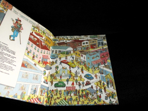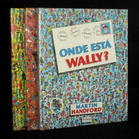 Livros ilustrados onde o desafio é encontrar o personagem Wally com a sua camisola às riscas vermelhas e brancas em cenários repletos de detalhes e personagens.