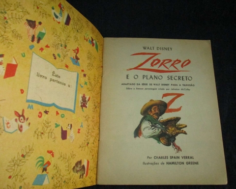 Livro infantil vintage. Adaptado da série de Walt Disney para a Televisão, sobre o famoso personagem criado por Johnston McCulley. Ilustrações de Charles Hamilton Greene sobre a adaptação de Spain Verral. Tradução de Anadyr de Carvalho Lopes.