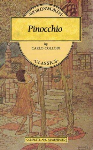 A carpenter finds a talking piece of wood and gives it to his poor neighbor, Geppetto, who carves the block into a marionette and names him Pinocchio. Pinocchio runs away as soon as he learns to walk. The marionette is caught by a Carabiniere, who assumes Pinocchio has been mistreated and imprisons Geppetto. Pinocchio goes back to Geppetto's house where he accidentally kills a talking cricket who had warned Pinocchio of the perils of disobedience and hedonism. That evening, Pinocchio falls asleep with his feet on the stove, and wakes to find that they have burned off. Geppetto is released from prison and makes Pinocchio a new pair of feet. In gratitude, Pinocchio promises to attend school, and Geppetto sells his only coat to buy him a school book.
