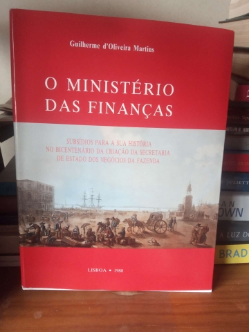 Subsídios para a sua História no Bicentenário da Criação da Secretaria de Estado dos Negócios da Fazenda. [Por] Guilherme d'Oliveira Martins. Ministério das Finanças. Secretaria de Estado do Orçamento. Lisboa. 1988. De 26x20 cm. Com 383, [i] págs. Brochado com sobrecapa de protecção.