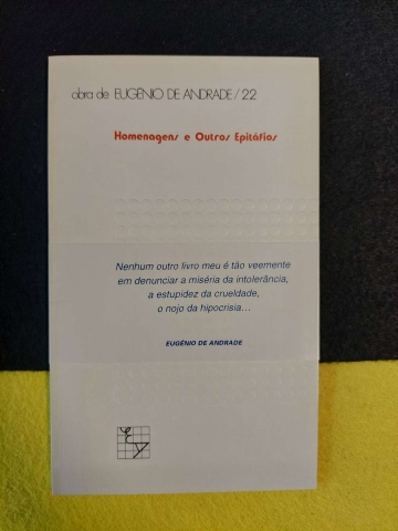 Publicado pela primeira vez em 1974 com o título «Escrita da Terra e Outros Epitáfios», numa edição muito restrita e de pouca circulação, este livro só se tornou conhecido do grande público em 1977, altura em que foi lançada a segunda edição, aumentada com inéditos. De lá para cá as edições seguintes foram sendo depuradas e transformadas pelo poeta, e enriquecidas com novos poemas, tendo o livro estabilizado com o título com que agora se publica. Como nos diz José Bento, magistralmente, «[…] estes poemas são uma busca de despojamento, uma insistência num ostinato rigore localizado e inserto por vezes no quotidiano, num espaço e num tempo que, brotando da infância, irrompe até um presente errante, para o qual o poeta, para no-lo revelar por inteiro, encontra sempre uma palavra única que prende, fere, ilumina, transfigura.» O prefácio da presente edição está a cargo de Paula Morão, que nos diz que os «poemas de "Escrita da Terra · Homenagens e Outros Epitáfios" formam um todo orgânico, entre si e na obra de Eugénio. Na verdade, cada texto é celebração e monumento, pulsão vital posta diante do leitor.»