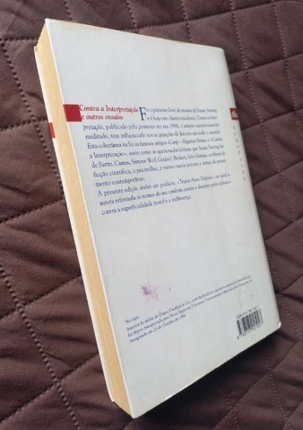 «Contra a interpretação» é um dos mais célebres ensaios de Susan Sontag e o que dá título à sua primeira coletânea de ensaios e recensões, publicada em 1966. Sobre estes escritos, Sontag observou que escrevia «com fervorosa parcialidade, acerca de problemas que […] suscitavam certas obras de arte, maioritariamente contemporâneas, de géneros diferentes: queria revelar e clarificar os pressupostos teóricos subjacentes a determinados juízos de valor e gostos». Entre eles, encontram-se «A morte da tragédia», «Notas sobre o camp», «Marat/Sade/Artaud» e «Sobre o estilo» (publicados na Partisan Review); «Os Cadernos de Camus» e «Ionesco» (New York Review of Books); «O artista como sofredor exemplar» (The Second Coming); «Uma cultura e a nova sensibilidade» (Mademoiselle); e «A imaginação da catástrofe» (Commen-tary), para nomear apenas alguns.