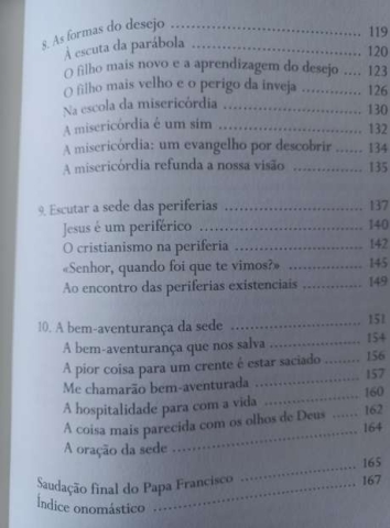 Estes são os textos que serviram de guião às reflexões conduzidas pelo poeta, teólogo e sacerdote português junto do Papa Francisco e dos cardeais da cúria romana sob o tema Elogio da Sede. Um livro decisivo que guia as reflexões da Igreja sobre o mundo. Um documento de rara beleza e originalidade.