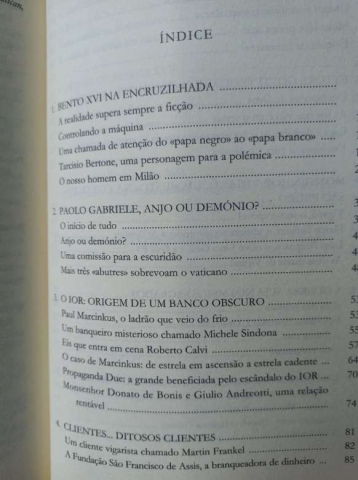 A 19 de abril de 2005, o cardeal Ratzinger foi eleito Papa. Mal sabia ele que, como os seus antecessores, iria encontrar um osso duro de roer: o IOR (Instituto para as Obras Religiosas) ou o Banco do Vaticano. Os Abutres do Vaticano revela uma história de mordomos traidores, filtragem de documentos, comissões secretas de espionagem, serviços de espionagem e contraespionagem do Vaticano, prelados que denunciam a corrupção e são imediatamente afastados de São Pedro, lavagem de dinheiro, altos membros da máfia siciliana, um plano para assassinar o Papa, uma adolescente desaparecida e supostamente usada como escrava sexual, uma guerra entre jornalistas e diretores da imprensa católica, um presidente do IOR com medo de ser morto. E, no Estado do Vaticano, a realidade é sempre mais estranha que a ficção.