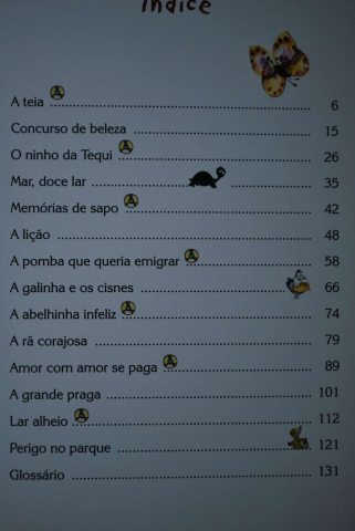 Livro de fábulas, onde as personagens são animais pertencentes à fauna portuguesa. São histórias cheias de vida que, por um lado, levam as crianças à descoberta do mundo animal, sensibilizando-as para a protecção da Natureza, e, por outro, abordam valores importantes, como a tolerância, a solidariedade, a amizade, o respeito pelos outros Em cada história, as diversas personagens são confrontadas com situações que se podem transpor para a vida de todos os dias das próprias crianças