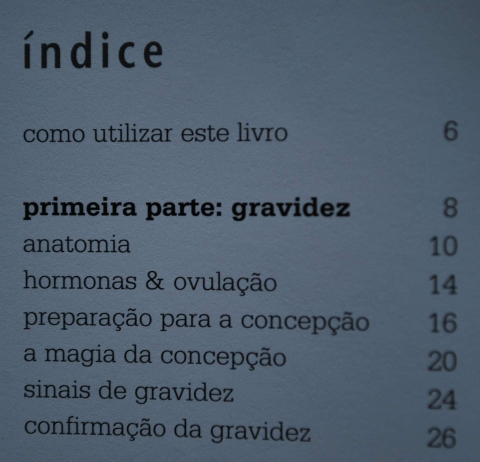 A primeira, Gravidez, fala da menstruação e do modo como o corpo se prepara para o parto, sem esquecer o que acontece nos dias a seguir à concepção.