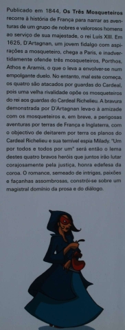 Os Três Mosqueteiros é um romance histórico escrito pelo francês Alexandre Dumas. Inicialmente publicado como folhetim no jornal Le Siècle de março a julho de 1844, foi posteriormente lançado como livro, ainda em 1844, pelas Edições Baudry