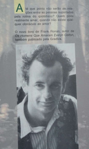 Frank Ronan. nasceu em maio de 1963 em New Ross , County Wexford. É um romancista. Também escreve uma coluna mensal para a revista Gardens Illustrated e tem contos seus incluídos nas antologias Best Short Stories, Telling Stories e The Best of Cosmo Fiction e ainda no Daily Telegraph e em várias revistas. Alguns foram também narrados na BBC Radio 4.