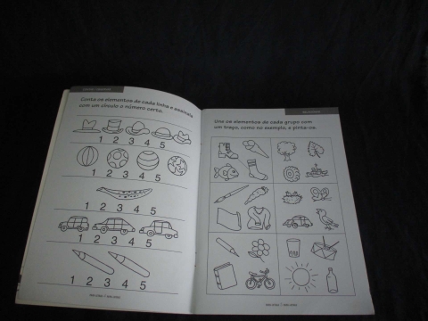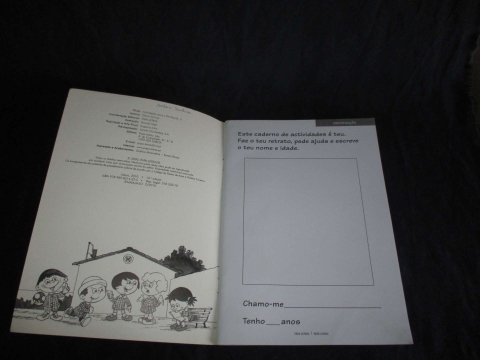 Assinatura de posse. Capa de brochura. Ilustração Ricardo Neto. Livro que propõe actividades variadas e formativas para crianças em idade pré-escolar, com referências explícitas às aquisições que cada uma dessas actividades desenvolve, expressa de modo mais destacado. Livros Didáticos e atividades. Educativo.