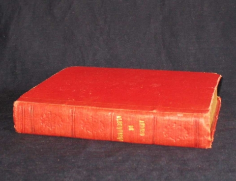 Encadernação antiga de inteira em tela com título a ouro na lombada. Grande Romance Histórico.
