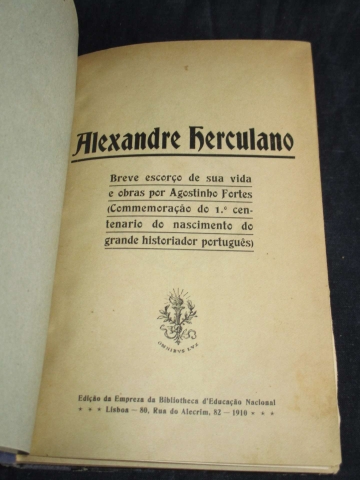 Livro: Alexandre Herculano Breve Escorço de sua vida e obras