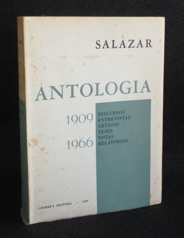 Discursos Entrevistas Artigos Teses Notas Relatórios. Capa de brochura. Direcção e nota prévia de Manuel Dias da Fonseca. escolha de textos de Eduardo Freitas da Costa. “Esta 3.ª edição é comemorativa do 40.° aniversário da Revolução Nacional. Forçoso é que a revolução prossiga; os povos não suportam a estagnação: — cada dia que passa deve ser um pólo útil, um passo em frente, na ligação do passado com o futuro. É preciso interessar as sucessivas gerações, falando-lhes não tanto do que já se fez, mas principalmente do que falta fazer — isto é, daquilo que, nos anos próximos, a todos competirá realizar. Tanto na doutrinação como na acção política, é necessário sinceridade nas palavras e coerência de atitudes. E devem os altos cargos ser ocupados por gente capaz de seguir a doutrina e o exemplo de Salazar: servir a Nação, com simplicidade e isenção e coragem — e a justiça devida a cada um. Porque são realidades que urge considerar, não me escusei a apresentá-las: apontar o que seja de remediar, é servir a Nação e Salazar. Ora servir Salazar e a Nação, é precisamente o fim desta Nota Prévia — e desta Antologia. Lisboa, 28 de Maio de 1966. Manuel Dias da Fonseca”.