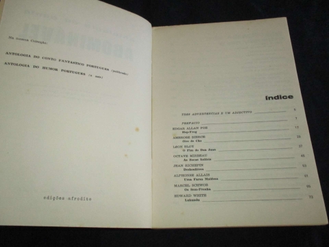 Abominável: adjectivo que o dicionário dá por originário do latim (abominabilis), significando que excita a aversão, o horror, ou, por extensão, muito mau. Ao caso interessa-nos a primeira opção. Nela vai inspirar-se a ideia que reúne a presente antologia de algumas dezenas de contos nas variadas tendências, buscando raízes no romantismo, no realismo, no humor-negro, no fantástico, no surreal, na ficção-científica, porém irmanados pela constante que lhes vem da mesma forma de protesto: uma provocação dirigida com maior ou menor eficácia aos centros que em nós desencadeiam a repulsa física, o abalo de que se tem por regras primárias na moral estabelecida, a prática da crueldade à gama elevada da especialidade, a sugestão das formas singulares da montruosidade.
